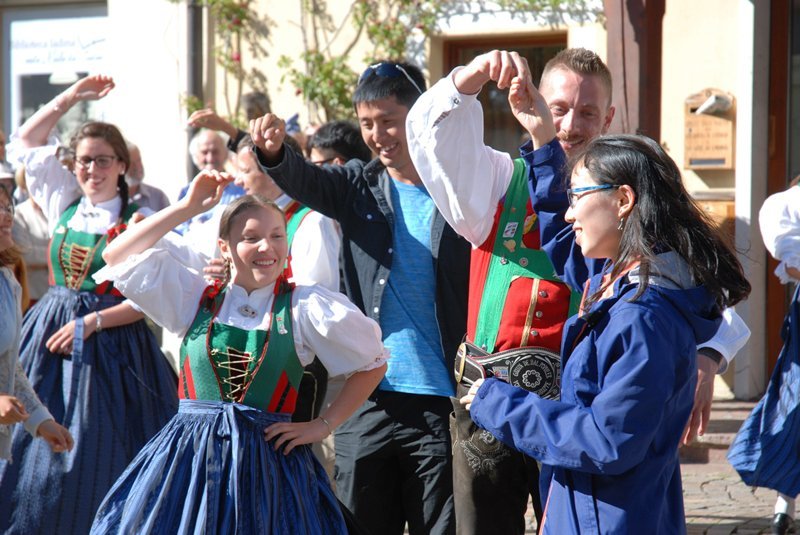 Nach der Besichtigung der geologisch-paläontologischen und der mineralogischen Sammlungen konnte die Gruppe beim geführten Museumsrundgang auch ein aufschlussreiches Bild der Geschichte und Kultur des Grödentales erhalten. Anschließend konnten die Gäste aus China bei einer Vorführung der Tanzgruppe aus St.Christina und Wolkenstein noch den Charme traditioneller Tänze genießen.