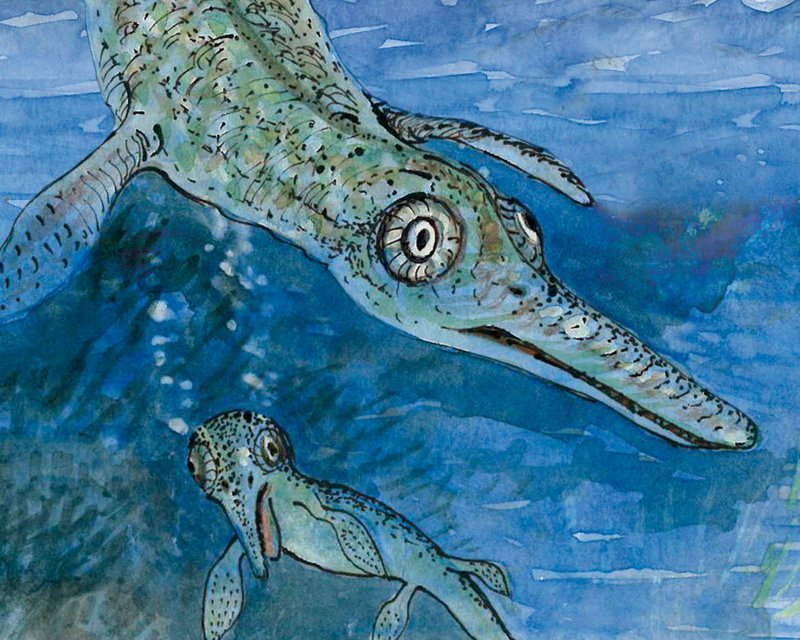 Vijites menedes ala culezion de fossìi cun l schilet de marueia dl itiosaur de Secëda.