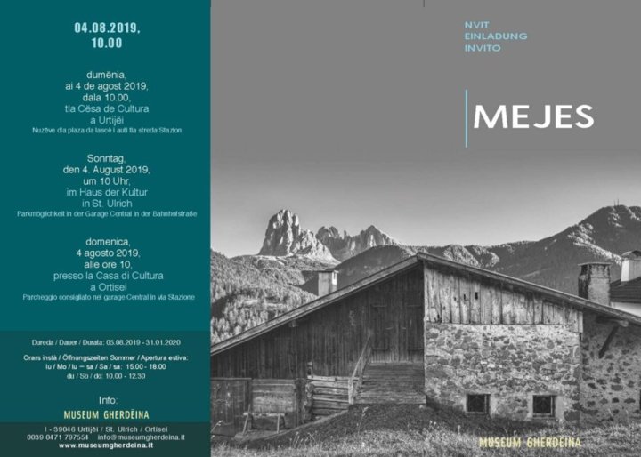 Inaugurazion "MEJES - La memoria de na cuntreda" chësta dumënia, ai 4 de agost dala 10 danmesdi, tla Cësa de Cultura a Urtijëi.