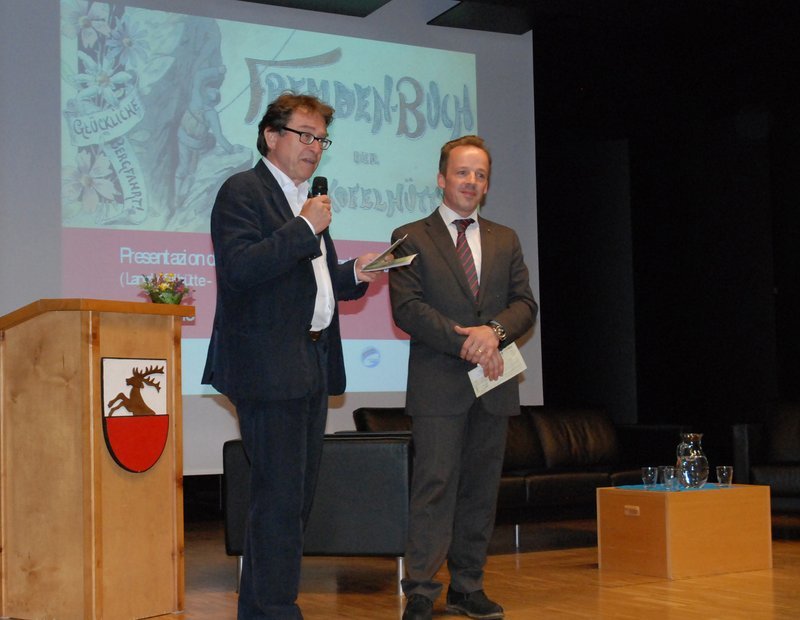 Presentazion dl prim liber di ghesć “Fremdenbuch” dla sosta de Dantersasc (Langkofelhütte/Rifugio Vicenza) cumprà dal Museum Gherdëinan juebia ai 13 de juni 2013 tla gran sala dl chemun de Santa Crestina