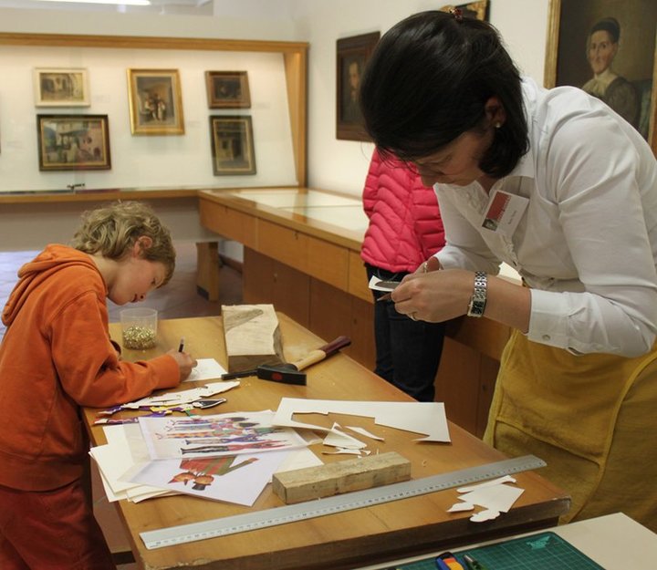 Duc ie de cuer nviei a tò pea tl museum vel’ pez da fé damat o juech giapà scincà da si genitors o dai nëinesc y nes cunté velch de si lecorc liei al fé damat da pitli.
